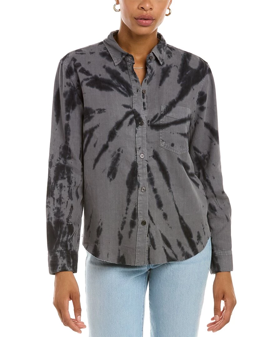 - Ingrid Raw Linen-Blend Shirt In Smoke Swirl With Left Chest Pocket, Barrel Cuffs, Inverted Back Pleat, And Raw Edge Shirttail Hem