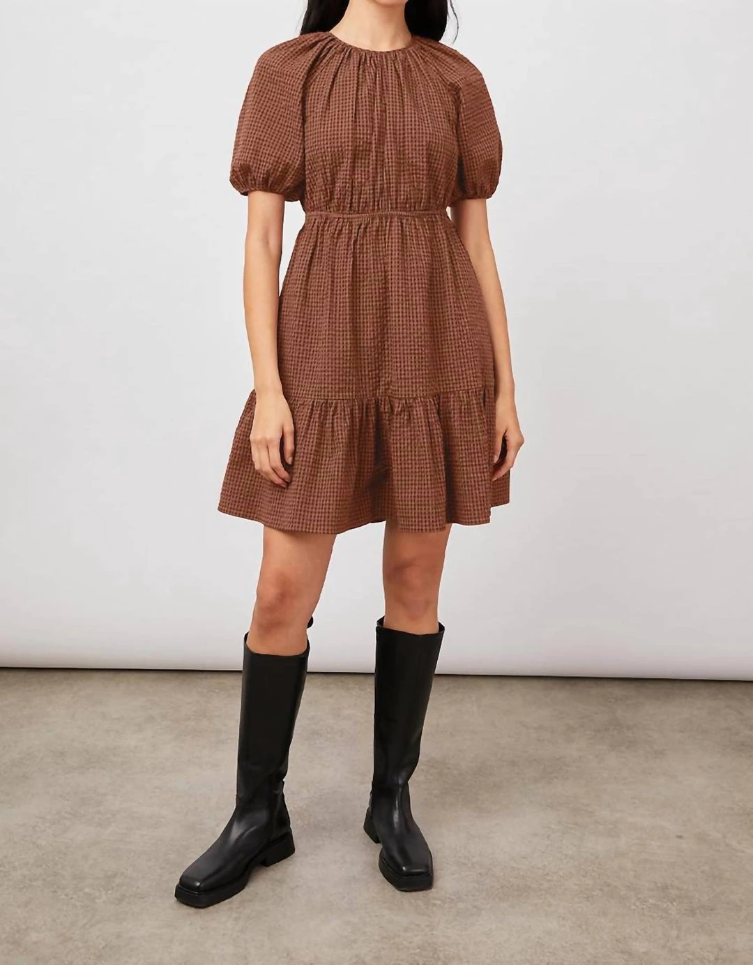 The Khloe Gingham Dress from Rails is a flattering, feminine dress perfect for any occasion. Made from textured seersucker cotton, this unlined mini dress features a crew neckline with shirring, balloon sleeves, elastic waist, and ruffle detail at hem.Imported.Dry Clean Only.