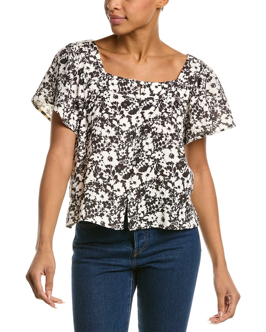 - Magnolia Blouse In Cameo Floral With Short Sleeve Top, Square Neckline, Button-Down Closure