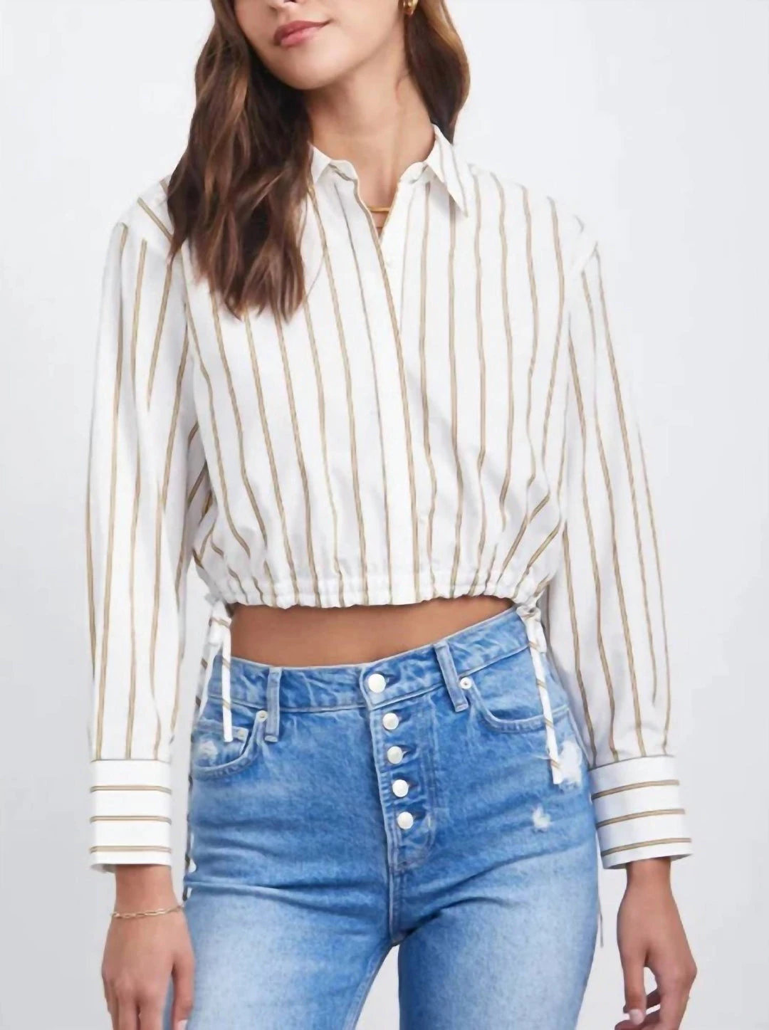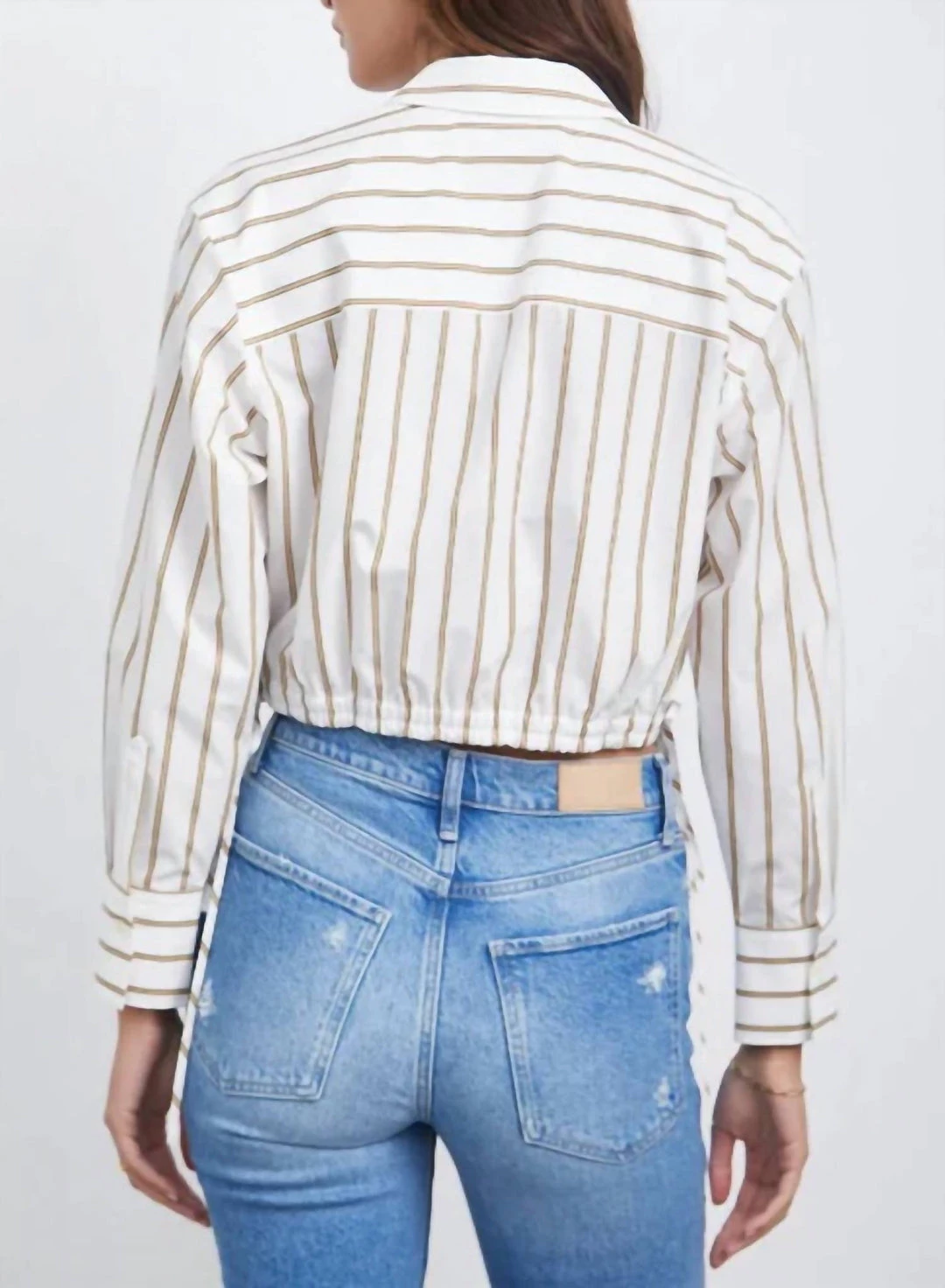 Made from lightweight cotton poplin, this crisp button-down shirt comes in a cropped length and features an elastic hem with adjustable drawcord at hem, concealed placket at center front and a relaxed fit.