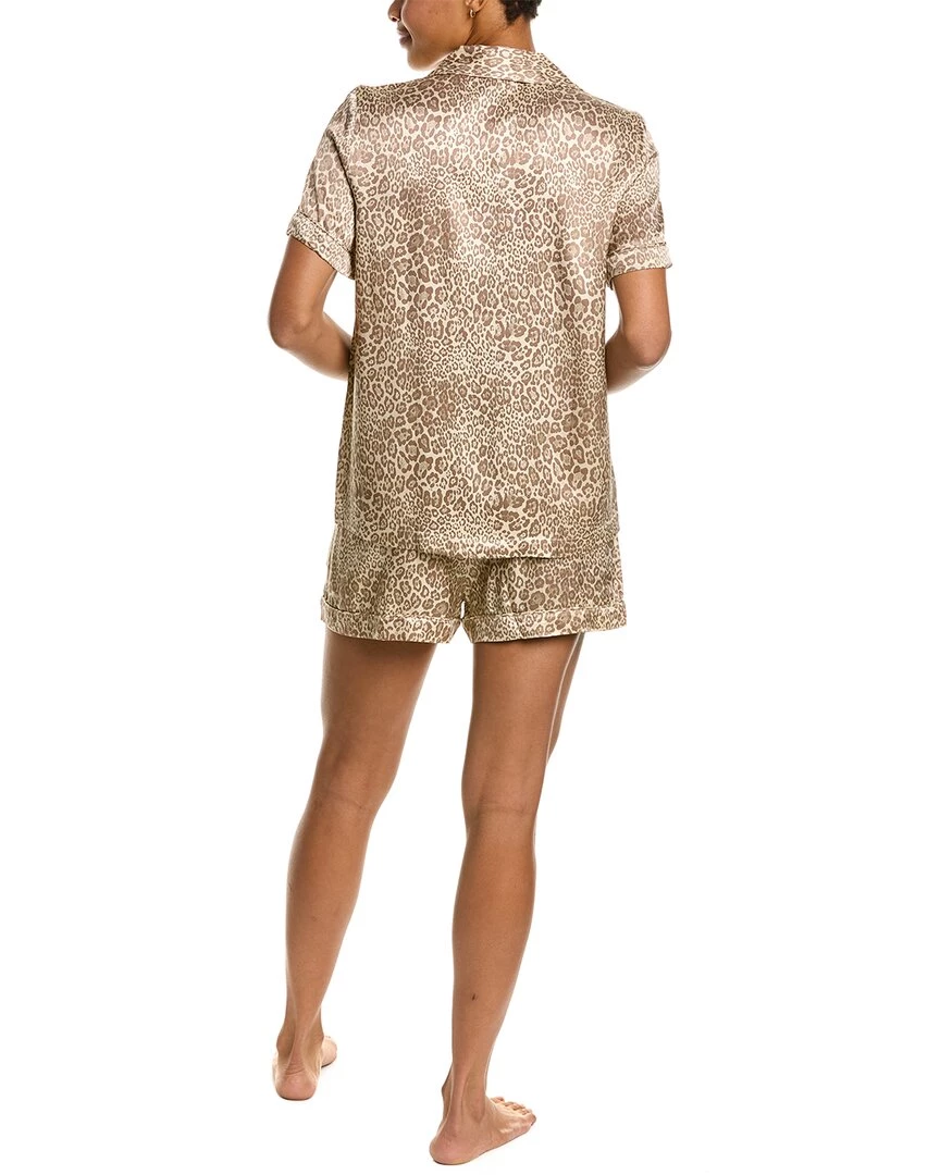 - Tommi Pj Set In Tan Cheetah With Pajama Set – Short Sleeve Button-Down Shirt, Single Patch Pocket At Chest, Matching Short, Elastic Waist, Drawstring