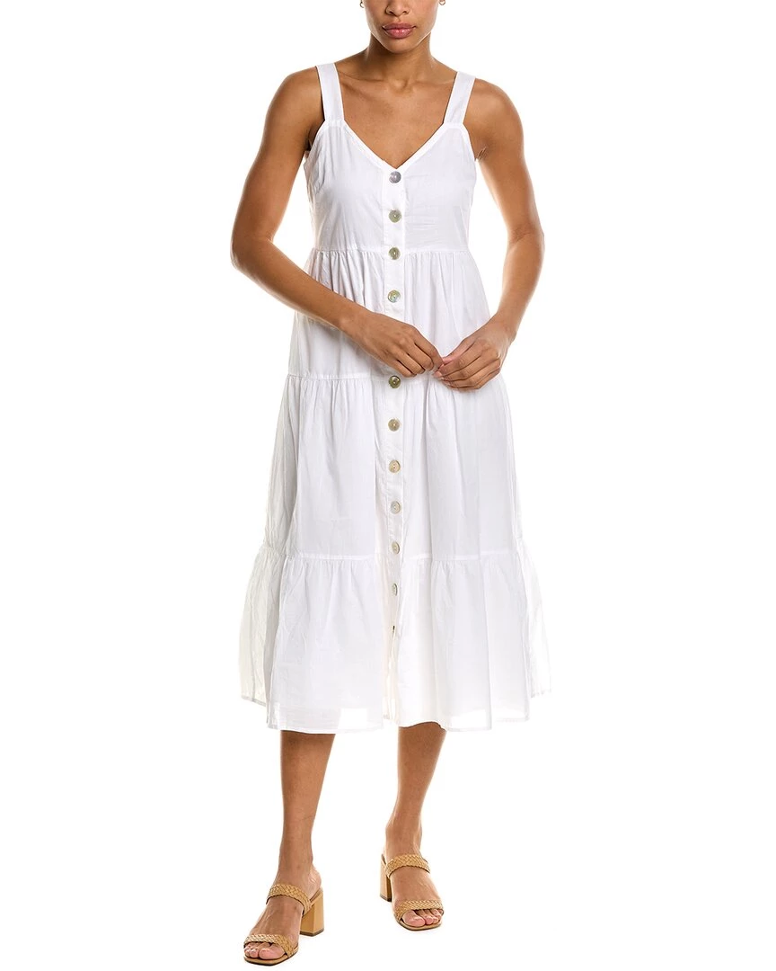 - Violet Midi Dress In White With Midi Dress, Smocking At Back